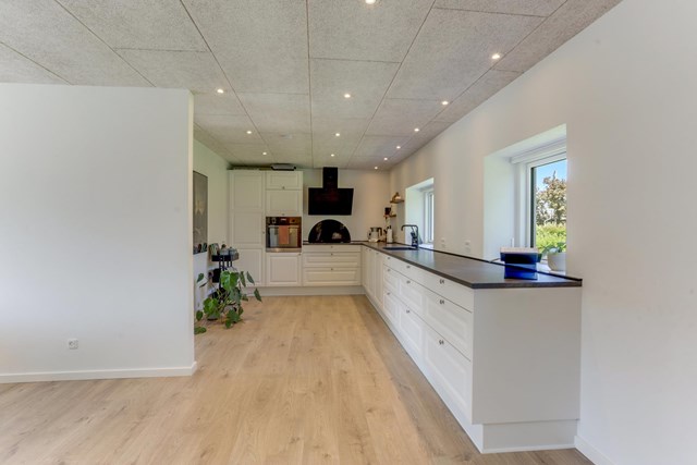 Udenfor finder du blomsterhave, egen sø og et udsigtstårn med panorama over naturen. Ejendommen ligger midt i naturskønne omgivelser ved Jyske Ås, men stadig kun en halv times kørsel fra Aalborg og Frederikshavn. Desuden har du her muligheden for at købe næsten alt inventar med, så den er lige til at flytte ind i.