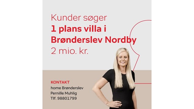 Til konkrete købere søger vi lige nu en indflytningsklar villa i ét plan i Brønderslev Nordby på mindst 130 m² - gerne med en garage