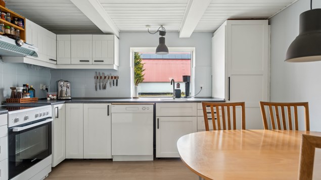 Stuehuset giver jer et godt råderum til både privatliv og samling. Det er af ældre dato, og det giver jer mulighed for selv at renovere – og beholde det, der fungerer, som det skal for jer. Med godt over en håndfuld værelser, et badeværelse, et toilet, et stort bryggers, et spisekøkken og en stor stue er det bare med at tænke i drømme, funktion, design og atmosfære. Det er alt sammen helt op til jer, og I kan gøre det hele i jeres eget tempo.