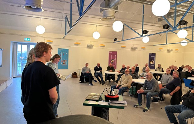 Foto: Brønderslev Bibliotek // Gymnasieeleverne afprøvede deres fortællinger for mandefællesskabet ”Tirsdagstræf” på Brønderslev Bibliotek.