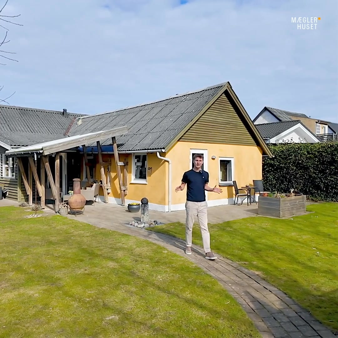 Her får du en velholdt og indbydende villa beliggende centralt i Vrå. Boligen er løbende forbedret med nye vinduer fra 2005 til 2019, samt ny taggry og varmtvandsbeholder i 2023. Udenfor venter en velplejet have med flere sydvente terrasser og et isoleret værksted.