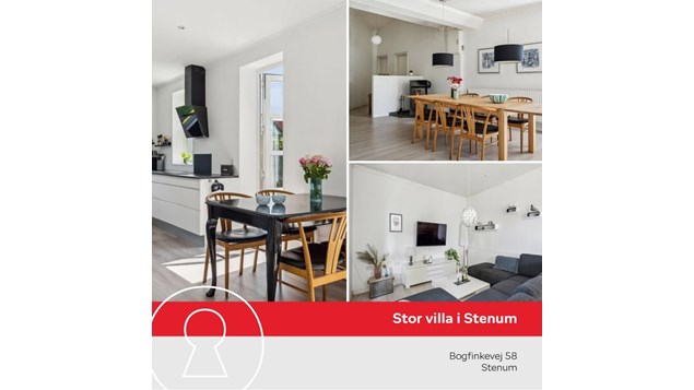 På Bogfinkevej 58 finder du hele 300 m² bolig med plads til den store familie – eller mulighed for at kombinere hjem og liberalt erhverv.